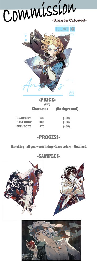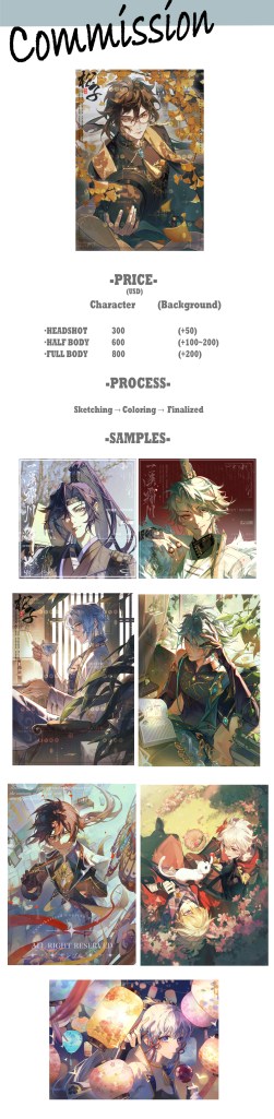 5.1 Due to the illustrator’s tight schedule, it is recommended to consult and commission at least a month in advance to secure an ideal deadline. The deadline should be determined initially and may not be unilaterally changed by the illustrator without exceptional circumstances. However, if significant modifications are requested midway, an extension to the deadline may be considered.